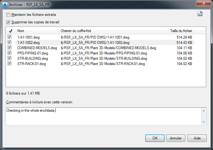 - Si le dessin que vous archivez contient des références à d'autres fichiers (fichiers associés à Vault), vous pouvez sélectionner la colonne d'archivage pour d'autres dessins.