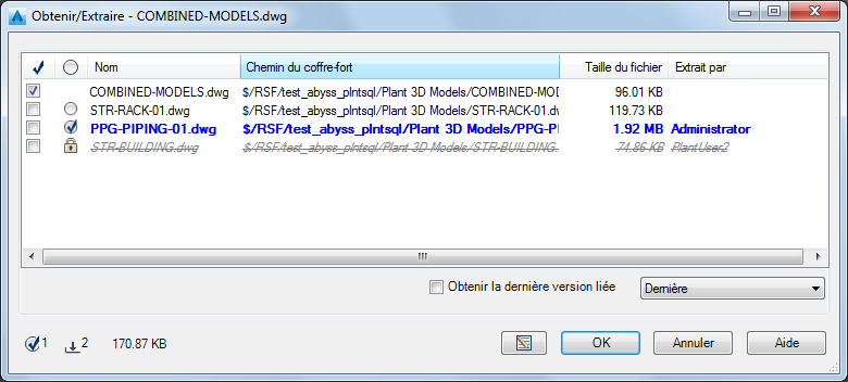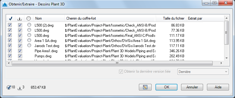- Si le dessin fait référence à d'autres dessins (fichiers associés à Vault), vous pouvez sélectionner la colonne d'extraction pour ceux-ci s'ils ne sont pas déjà extraits.