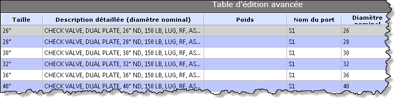 Permet de modifier les propriétés de taille de composant dans un format tabulaire