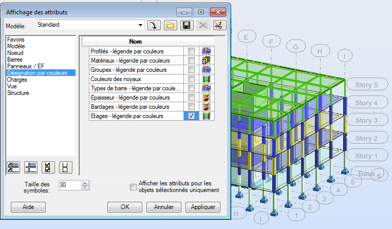 Découvrez comment modifier l'affichage pour afficher les étages par couleur et comment créer un nouveau type d'analyse pour l'analyse statique linéaire.