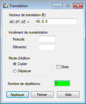 entrez "40, 0, 0" dans la zone Vecteur de la translation ;