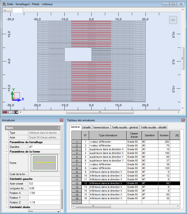 L'armature inférieure finale dans la direction X est illustrée ci-dessous.