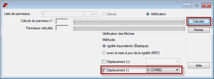 La boîte de dialogue Etat de calcul s'ouvre et affiche les informations relatives à la flèche de plaque admissible qui a été dépassée.