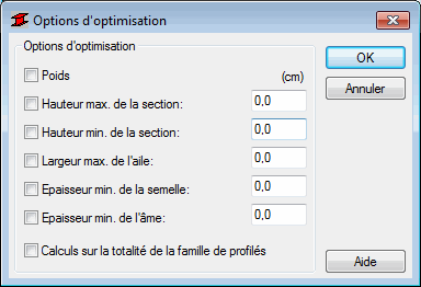 - poids - si vous sélectionnez cette option, l’optimisation prendra en compte le poids de la section, par conséquent la section la plus légère satisfaisant les conditions réglementaires sera recherchée dans la famille donnée.