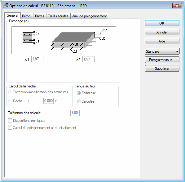Après l'activation de la boîte de dialogue Options de calcul pour les dalles BA et la sélection de l'onglet Général, la boîte de dialogue ci-dessous s'affiche à l'écran.