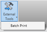 The default first panel on the Add-Ins tab is the External Tools panel that contains one button titled "External Tools." The External Tools menu-button is equivalent to the Tools > External Tools menu in Revit 2009. Any External Commands registered in a .addin manifest file will appear in this menu button.