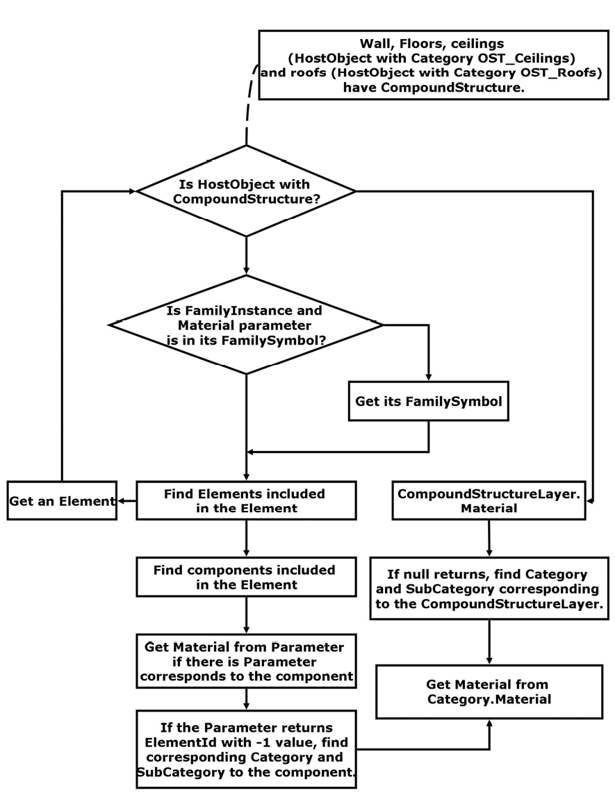 • The workflow shows how to get the Material object (not Autodesk.Revit.DB.Structure.StructuralMaterialType enumerated type) that belongs to the element.