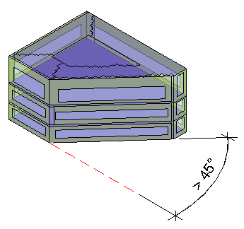 Lorsque vous créez un modèle d'énergie à l'aide de ces paramètres, le logiciel divise l'espace en zones thermiques lorsqu'un tournant dans le périmètre du bâtiment est supérieur à 45 degrés.