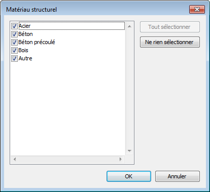 Sélectionnez chaque matériau à afficher et cliquez sur OK. Ils sont tous sélectionnés par défaut.