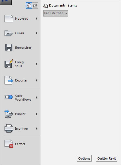 Dans le menu de l'application, cliquez sur le bouton Documents récents pour afficher une liste des fichiers récemment ouverts. Utilisez la liste déroulante pour changer l'ordre de tri des documents récents. Utilisez les punaises pour conserver des documents dans la liste, quelle que soit la date à laquelle ils ont été ouverts.