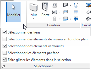 Activez l'option Sélectionner les éléments par face afin de pouvoir sélectionner des éléments en cliquant sur les faces intérieures, plutôt que sur les bords. Par exemple, activez cette option afin de pouvoir sélectionner un mur ou un sol en cliquant sur son centre.