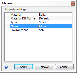 20. Material DB Name = Default. Type = Fluid, Name = Air. Click Apply.