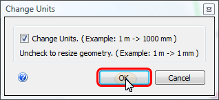 1. Click OK in the Change Units dialog.