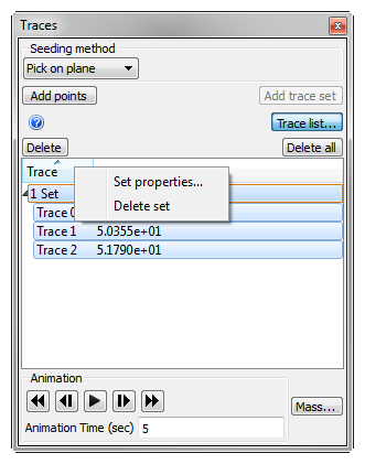 - Delete individual particle traces by selecting the trace from the list, and clicking the Delete button.