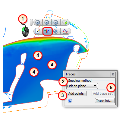 Note that sphere traces are only drawn forward, so no spheres will appear upstream of the originating surface.