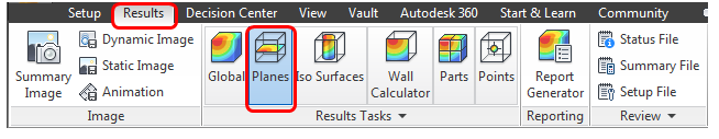 Results Planes are the primary tool for visualizing data on three dimensional models. They are cutting planes, and have several roles in Autodesk® CFD results visualization: