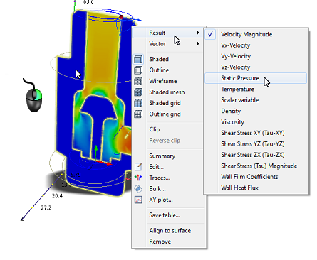 4. To see the pressure drop through the valve, right click on the plane, click Result and Static Pressure: