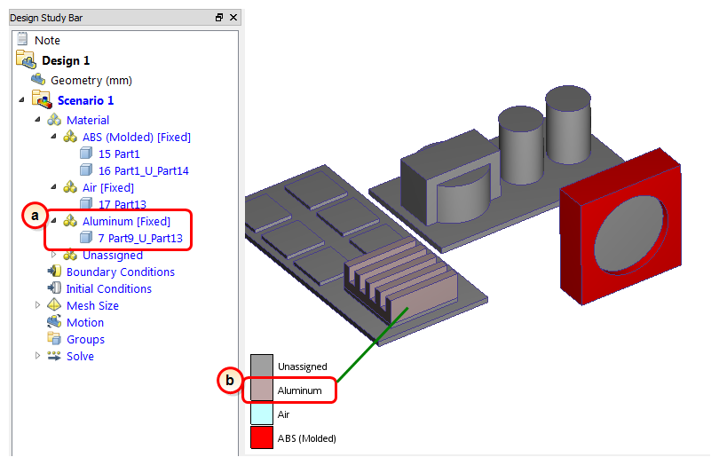 In this step, we assign Aluminum to several components (fan bracket, transformer, heat sink, and capacitors).
