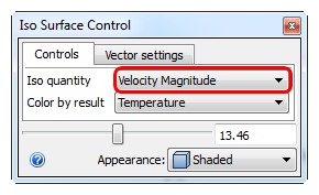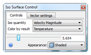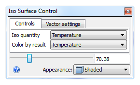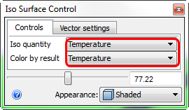 1. On the Iso Surface Control dialog, change both the Iso quantity and the Color by result to Temperature.