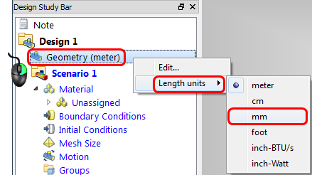 6. The geometry imports in units of meters, but we need to convert it to mm. To do this:
