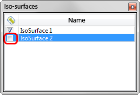 - Désactivez la case de visibilité dans la liste de sélection des iso-surfaces :