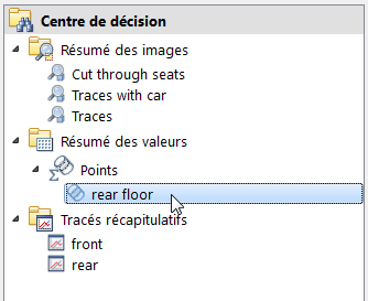 13. Sélectionnez le point récapitulatif rear floor (plancher arrière) dans la branche Résumé des valeurs du Centre de décision.