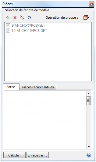 Pour désigner ces pièces en tant que pièces récapitulatives, cochez la case correspondant à chacune dans la zone Sélection de l'entité de modèle.
