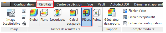 Les pièces de résultats sont idéales pour déterminer rapidement la température d'une pièce sélectionnée. Pour comparer les résultats provenant de plusieurs pièces, convertissez-les en pièces récapitulatives et visualisez leurs résultats dans l'onglet Valeurs critiques de la barre données de sortie.