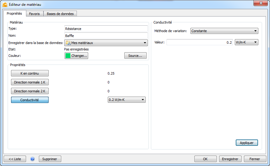 Sélectionnez Mes matériaux à partir du menu Enregistrer dans la base de données .