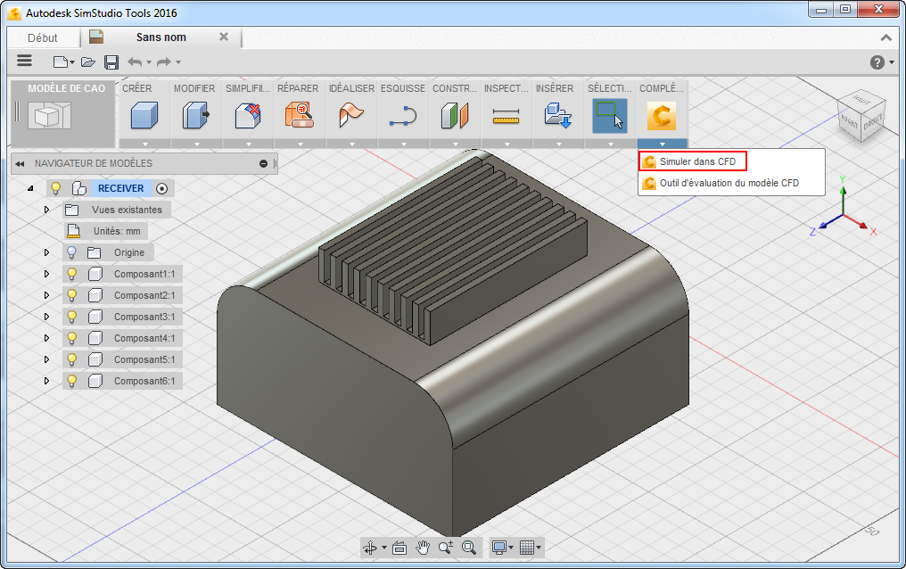Développez le menu Compléments, puis sélectionnez Simuler dans CFD.