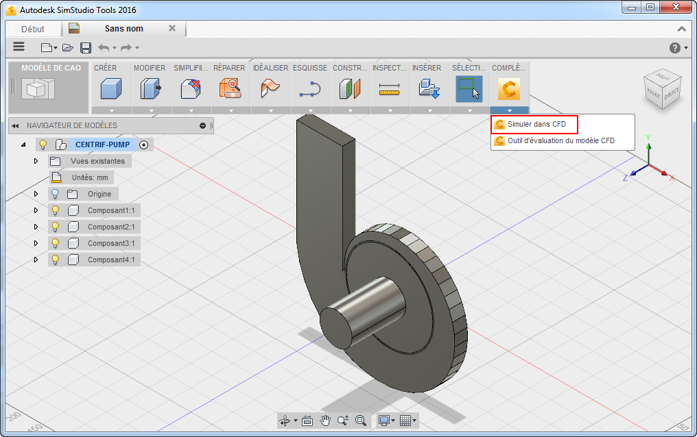 Développez le menu Compléments, puis sélectionnez Simuler dans CFD.