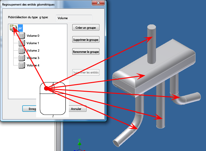 Cliquez sur le groupe air et sélectionnez les cinq pièces dans le modèle.