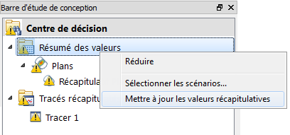 Dans le Centre de décision, cliquez sur Résumé des valeurs avec le bouton droit de la souris, puis cliquez sur Mettre à jour les valeurs récapitulatives.