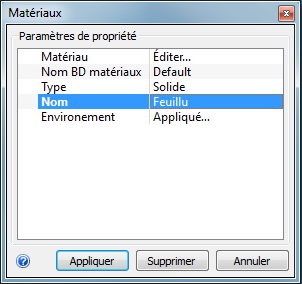 Dans la boîte de dialogue d'édition rapide Matériaux, Type = Solide.