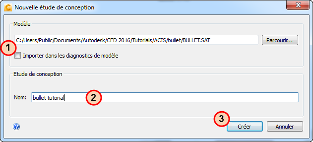 - Si vous utilisez CFD Flex, le dossier est Users\Public\Public Documents\Autodesk\CFD Flex 2016\Tutorials\<type de fichier>\bullet.
