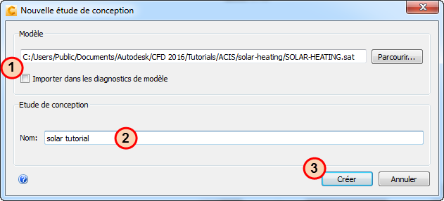 - Si vous utilisez CFD Flex, le dossier est Users\Public\Public Documents\Autodesk\CFD Flex 2016\Tutorials\<type de fichier>\solar-heating.