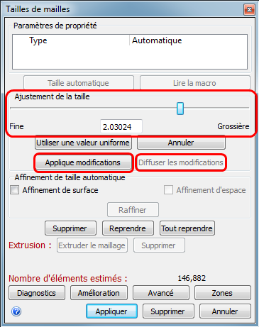 Pour modifier la définition de la taille de maillage, appliquez l'UNE des méthodes suivantes :