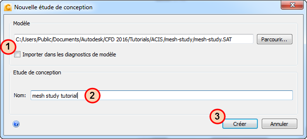 Dans la boîte de dialogue Gestionnaire de fichiers, accédez au dossier Users\Public\Public Documents\Autodesk\CFD 2016\Tutorials\<type de fichier>\mesh-study.