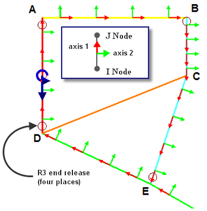- Axis 2 (weak axis of bending) lies in the plane of the model