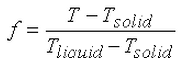 When the node is cooler than the solidus temperature, the fraction is equal to 0. When the node is warmer than the liquidus temperature, the fraction is equal to 1.