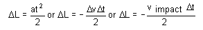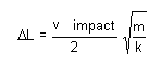 where v impact is the velocity of the cube, and thus of its top face, at the moment that contact is made. The negative sign in equation [9] is needed because Δv is negative and we seek a positive value for ΔL. Note how Δv has been replaced by just v impact because at the time of greatest deformation, the top of the cube is not moving.