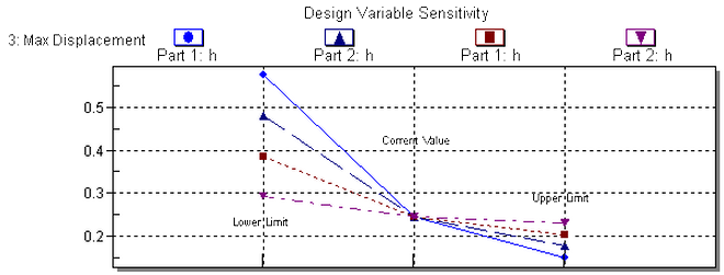 The results of a Design Study can be viewed with the Results: Design Variable Sensitivity menu. Three kinds of graphs are available: