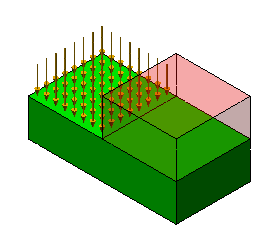 | In the Results environment (with Transparency used on the smaller part), it can be seen that the pressure is applied over the entire face. | In the Results environment (with Transparency used on the smaller part), it can be seen that the pressure is applied over the intended region only. The pressure is not applied under the smaller part. |
