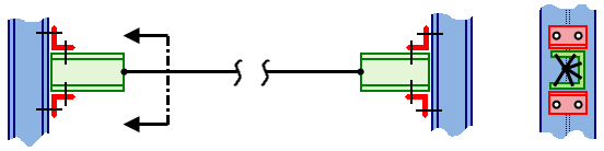 Tip: Making rigid connections to adjacent parts: Consider the preceding model image, specifically the second version, which utilizes a beam element span rather than all solid geometry. The spokes at each end are created using the same part number as the line element that connects the two centroids. Typically, the end connections are fairly rigid due to the relative shortness of the elements and the number of them. So, it is frequently acceptable to use the same beam element cross section for all of the line element. When visualized in 3D within the Results environment, the spokes will show up as virtual solids with the same cross section as the spanning beam. This effect may be undesirable for presentation images. While you could select the individual line elements that are the spokes and make them invisible, there is a better solution available for Linear analyses. Ideally, the spokes should rigidly connect the adjacent parts to the endpoints of the spanning beam element. The following modification not only produces a rigid connection, but it also eliminates 3D visualization of the line elements comprising the spokes. In the FEA Editor, after creating the centroid connection: