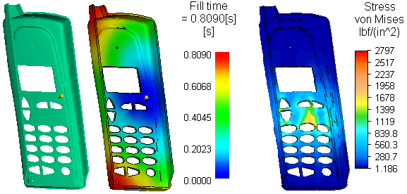 - Review the results, as usual. Note that results related to the Moldflow analysis, including the orientation of the fibers, must be viewed in Moldflow.