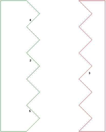 Figure 2. Regardless of how many surface numbers are used to define the serrations (4 are shown above), all must be defined as one enclosure. Mathematically, Surface 4 can radiate to Surface 5 through multiple reflections.
