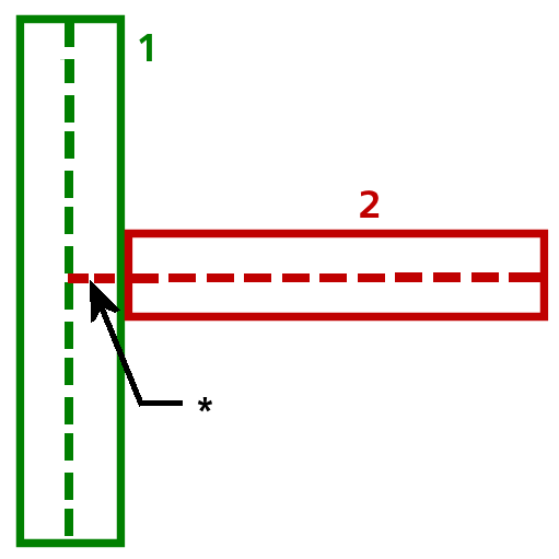 The midplane of Part 2 must be extended to reach the midplane of Part 1. The extension length, indicated by an asterisk (*), is half the thickness of Part 1.