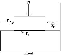 In Figure 9, a block is on a fixed surface. A normal force, N, is applied to allow the generation of a friction force, F f .A static coefficient of friction of μ exists between the block and the fixed surface. A lateral force, F is applied to the block. A spring is placed between the block and a wall to create a statically stable model. F f can range from 0 to μN as follows: