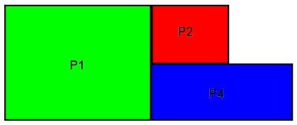![]() (a) Example three part model. Parts 2 (P2) and 4 (P4) have surface contact defined between them. Both are bonded to part 1 (P1). |