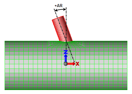 For both cases, the nozzle can be rotated about the Y axis so that it is not parallel to the Z axis. Specify the angle in the Angular rotation of nozzle about Y-axis (AR) field. Note that this value follows the left-hand rule, so a negative angle rotates the nozzle about the +Y axis.